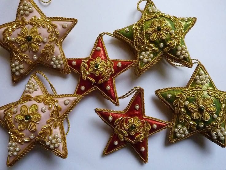 Christmas Decoratives Celebrate the season with our unique fusion Christmas decoratives, handcrafted with Indian artisanal touches. Discover embroidered tree ornaments, felt stockings with zari accents, wooden nativity sets, colorful wreaths, hanging bells, fabric baubles, and elephant- or peacock-inspired figurines. Made from eco-friendly materials like wood, cotton, beads, and recycled fabrics, these festive pieces blend Western holiday charm with vibrant Indian craftsmanship—perfect for trees, mantels, or thoughtful holiday gifts